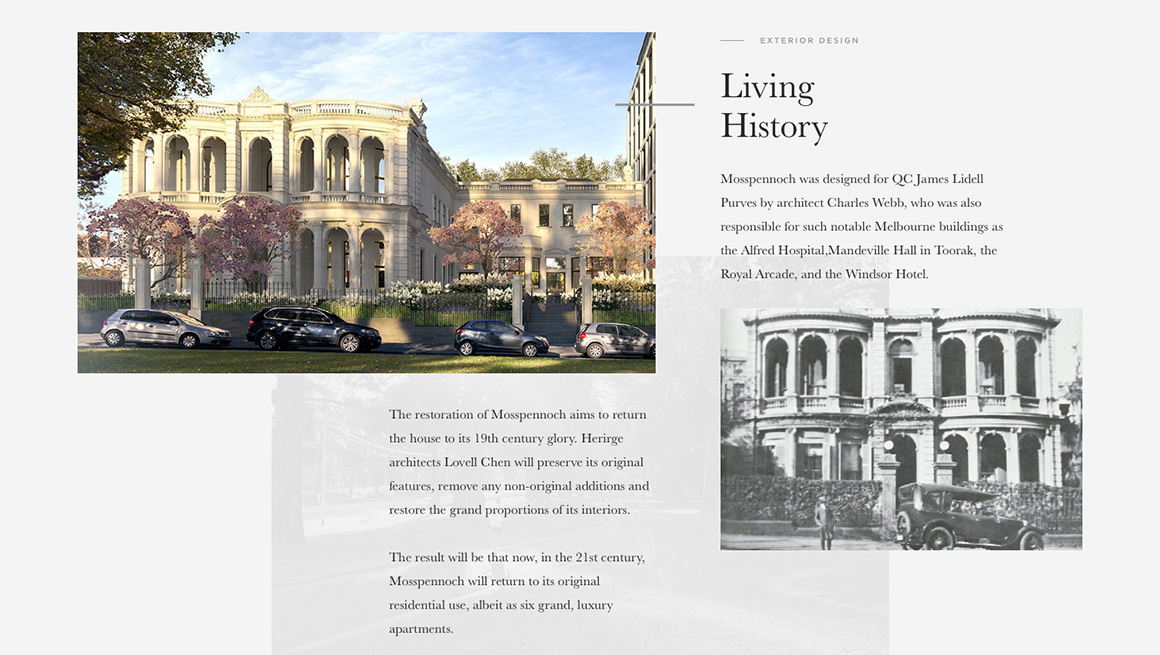 Heritage decorative features remain will be retained and conserved. The site is located in East Melbourne, Melbourne’s premier address. Because property in the suburb is so tightly held, a sense of urgency had to be created.